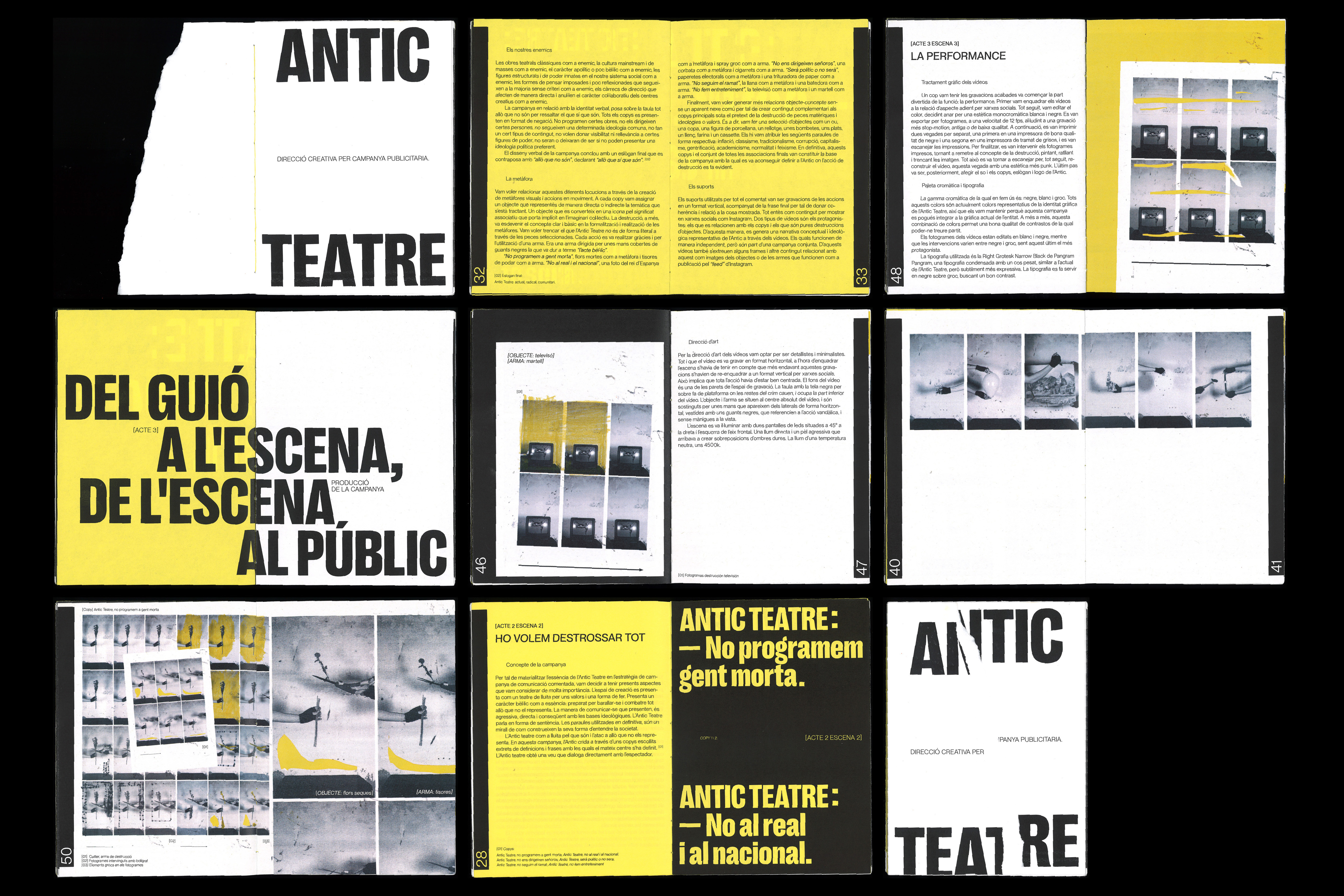 Antic Teatre is a space in Barcelona dedicated to promoting contemporary theater while engaging with the neighborhood. This project with a real client consisted of the design of a digital communication campaign with the main objective of promoting the center being faithful to its values. To materialize the essence of Antic Teatre, we resorted to the concept of fight and destruction, making known against everything that the center fights daily through copys and objectual and graphic metaphors. The final result, all designed to be published in social media, was a set of videos for advertising purposes, a set of images and a graphic system for the center's communication, and a book that documents the entire process of the project.