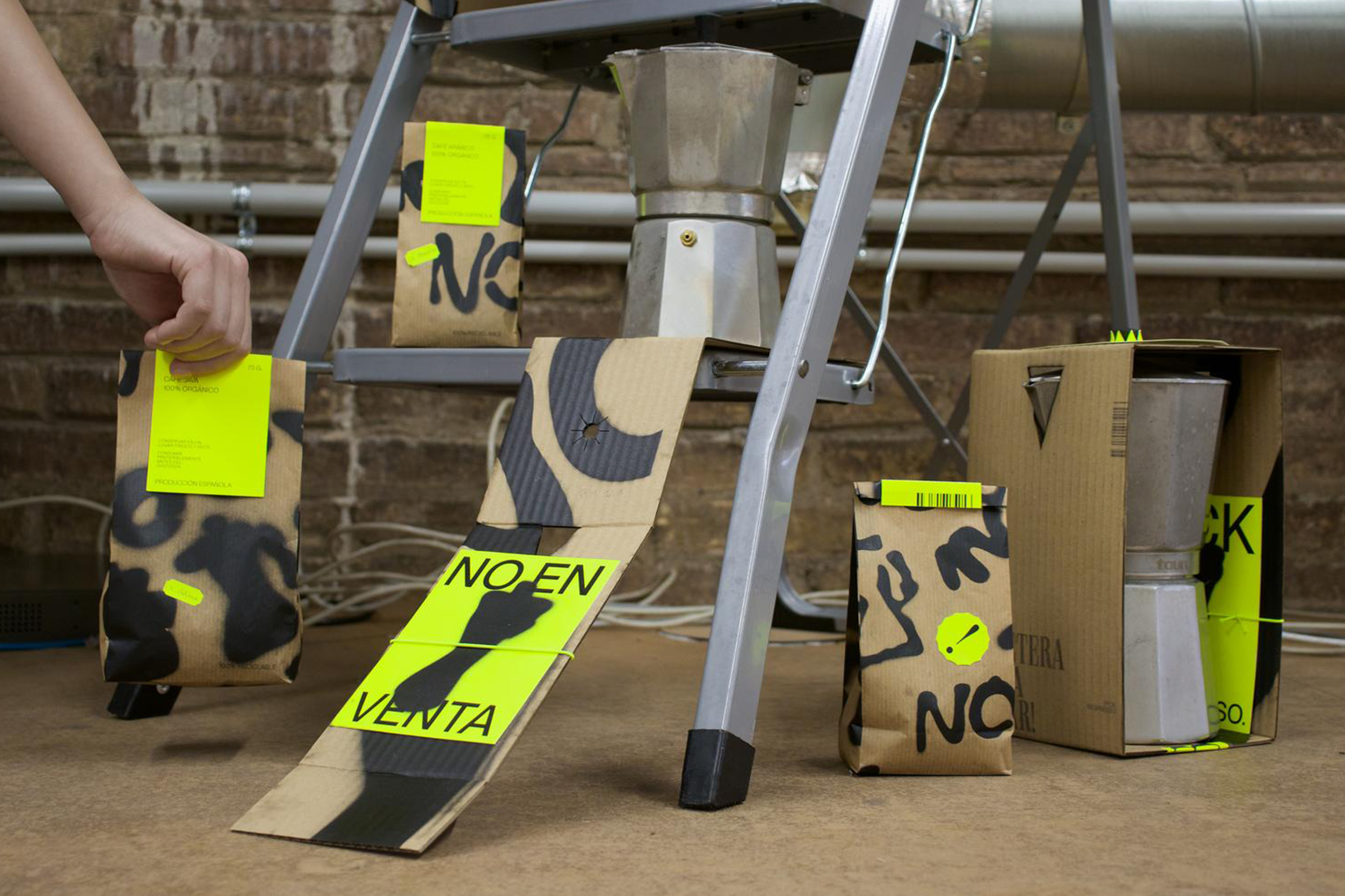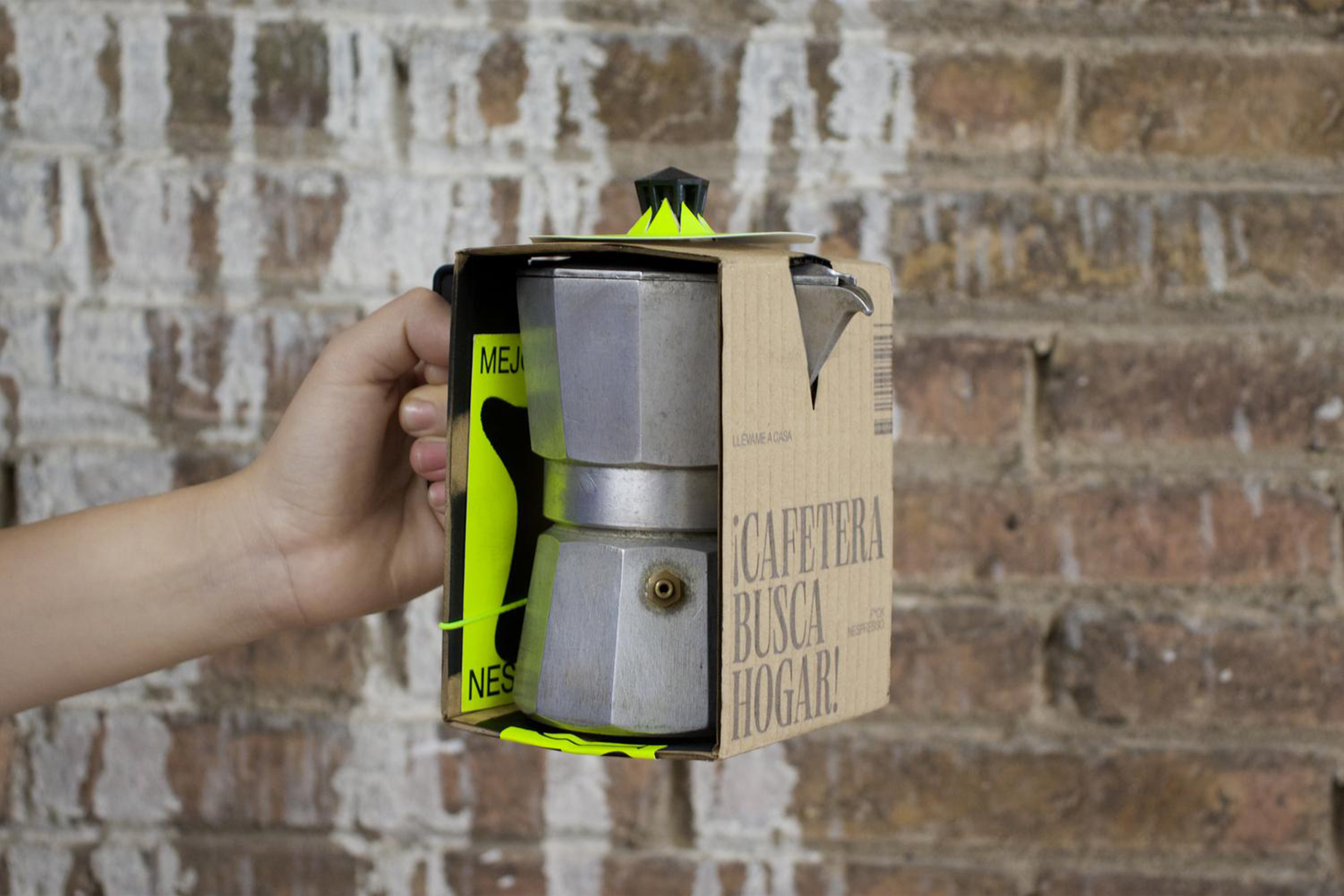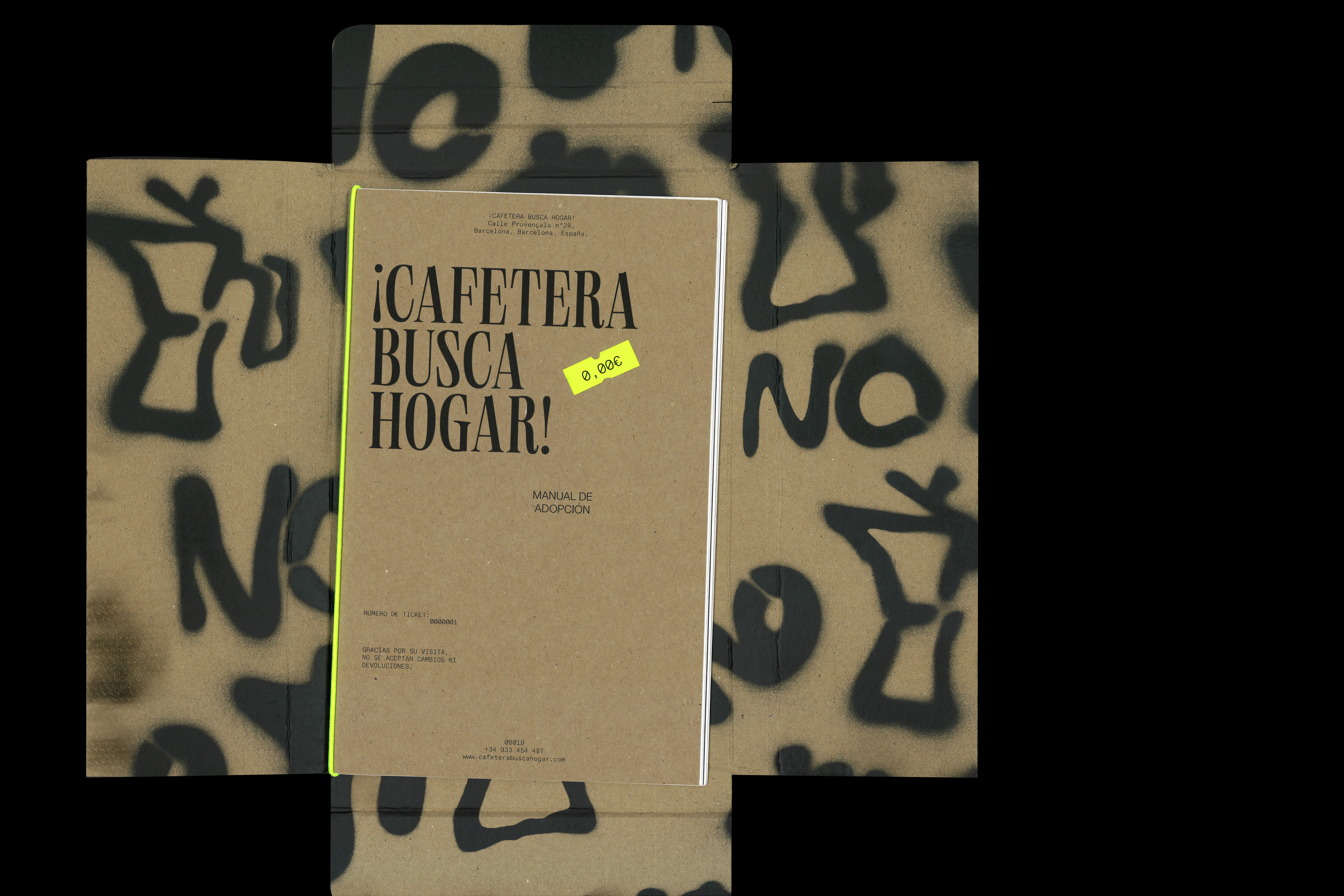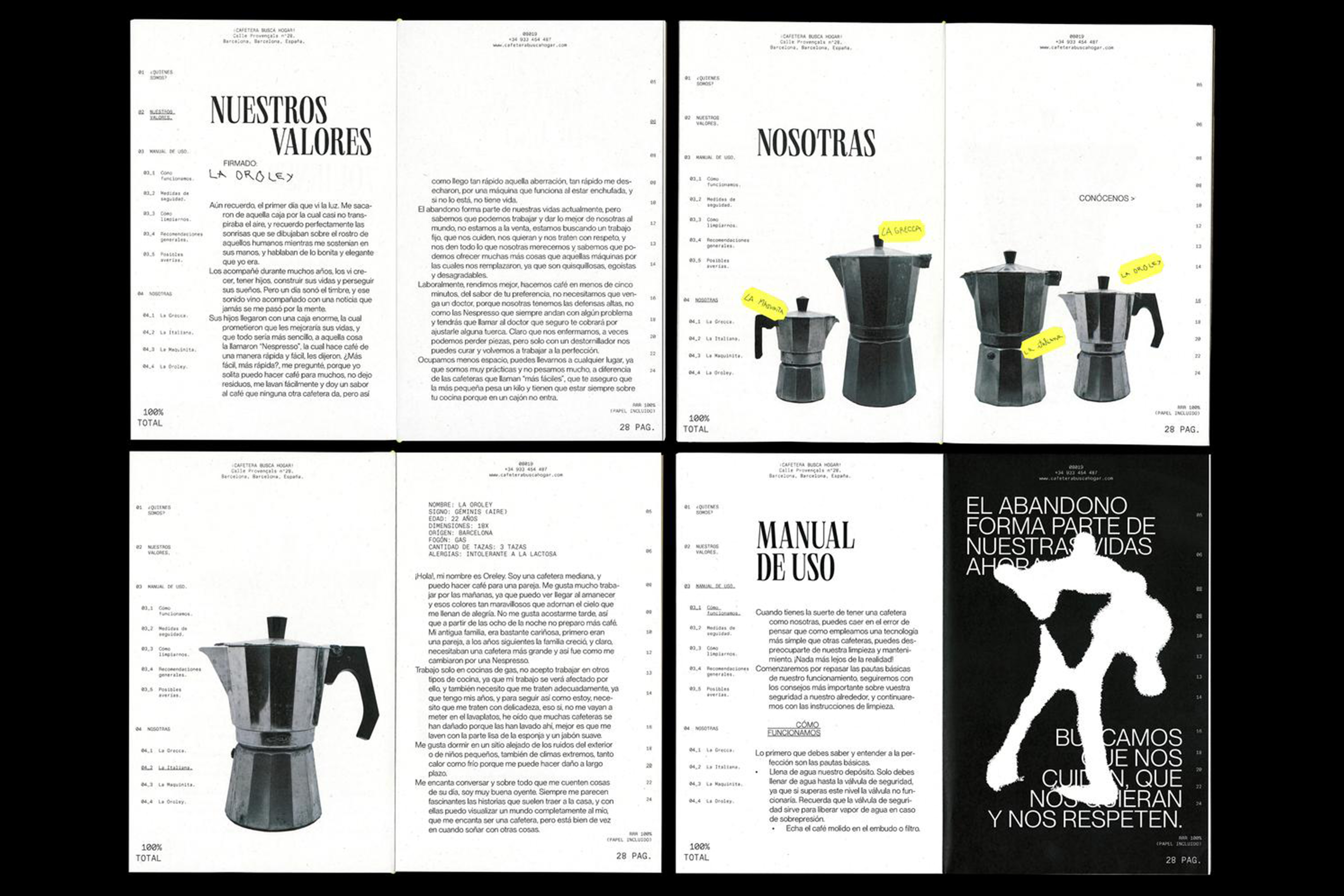 Coffee maker looking for a home! is a corporate identity project designed to help a community of abandoned coffee makers find a new family. Both the identity, the packaging and the editorial opt for a modern and striking style, although with the rebellious touches of the coffee pots, angry with their situation of abandonment.