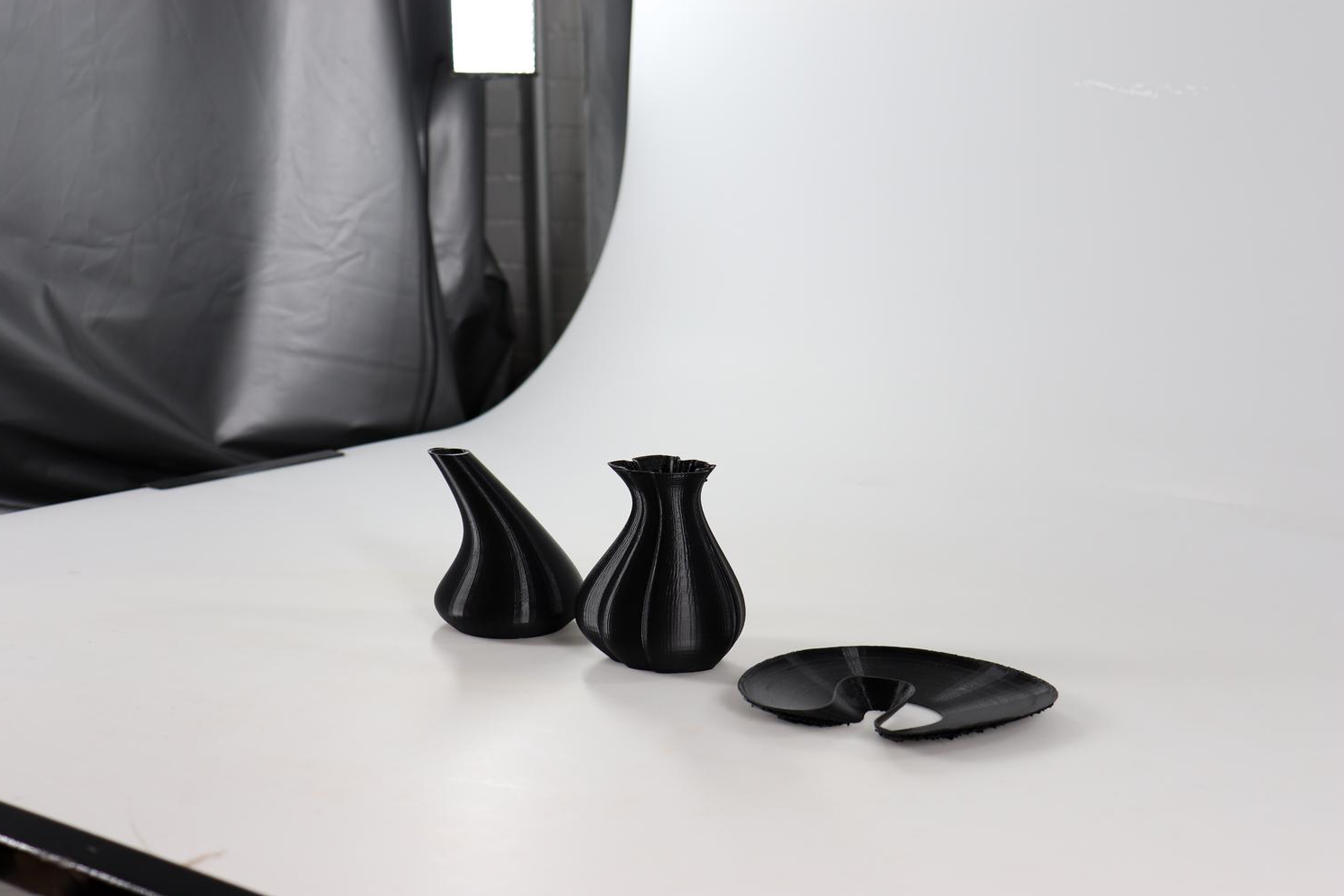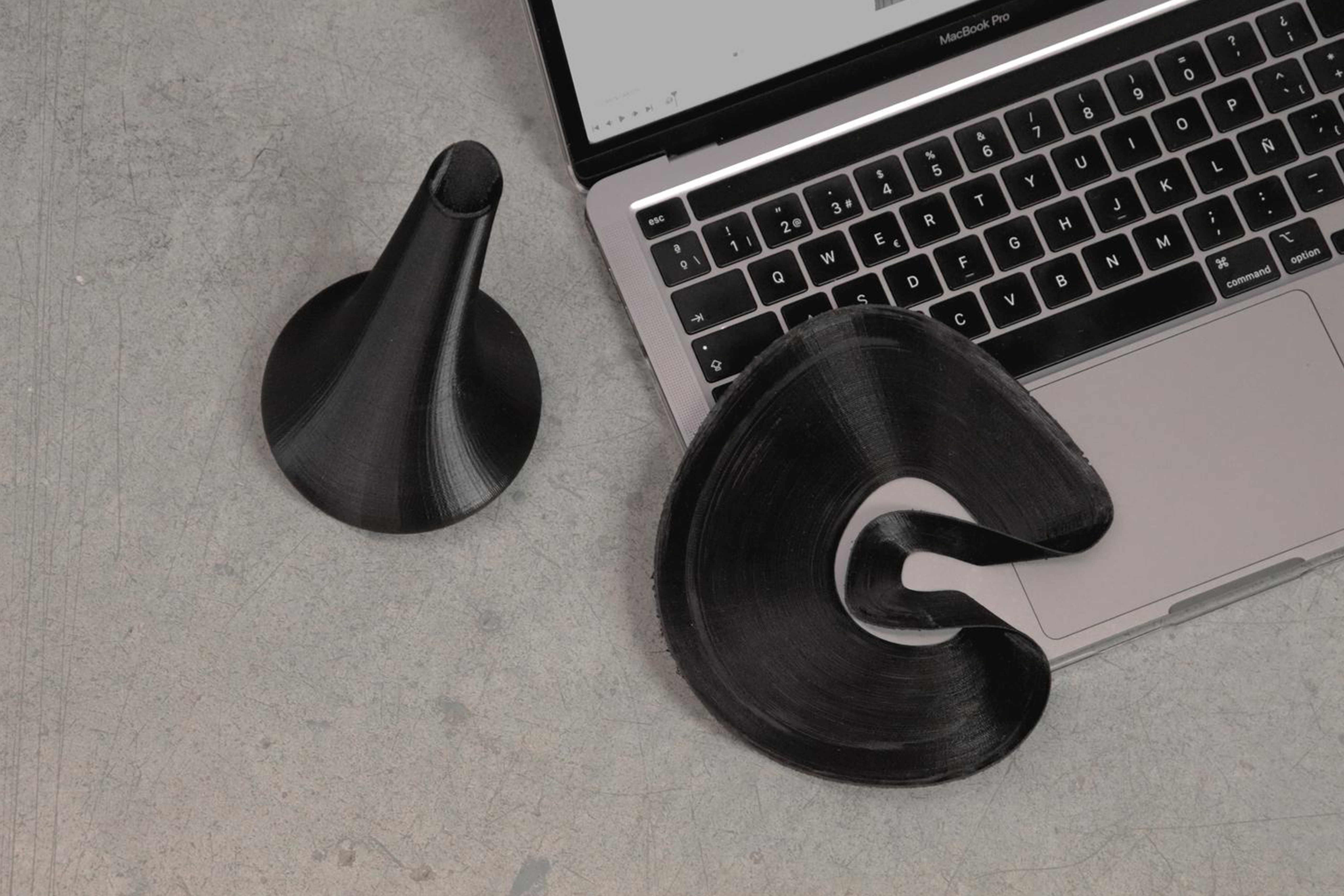 The creative process began with the digitization of the cross section of a pepper and by means of commands from 3D modeling software, the shape was modified until three different objects were obtained.